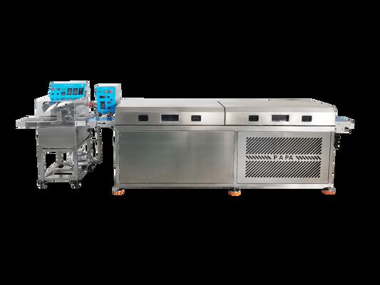 มันรวมการสร้างโมชิ การเคลือบช็อคโกแลต การเย็น และการส่งอัตโนมัติในกระบวนการต่อเนื่องเดียว เพื่อให้การเคลือบแบบเดียวกัน โครงสร้างที่มั่นคง และประสิทธิภาพการผลิตสูง